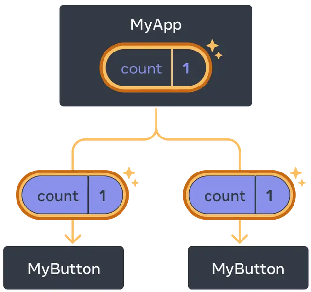 在前面的示例中,每个 MyButton 都有自己独立的 count,当每个按钮被点击时,只有被点击按钮的 count 才会发生改变: