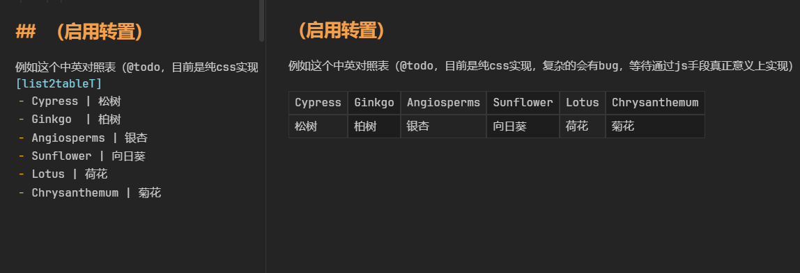 后续会将css实现改进为转化table元素实现